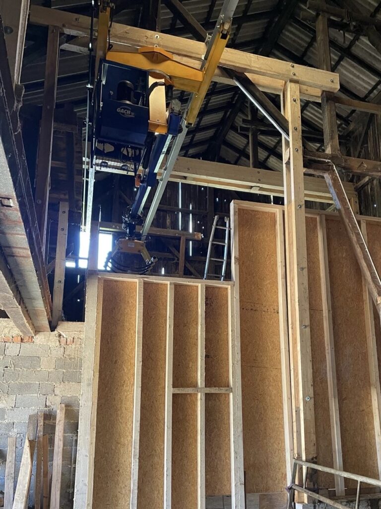 Von der Verstärkung des Heubodens, über das Lackieren der Schienen, bis hin zum Heben schwerer Teile in riesige Höhen. Jeder Schritt erfordert Präzision, Teamwork und Kraft.
